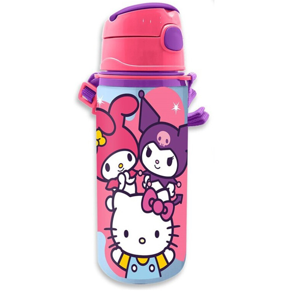 Hello Kitty Trinkflasche mit Trinkhalm 600ml aus Aluminium und PP.