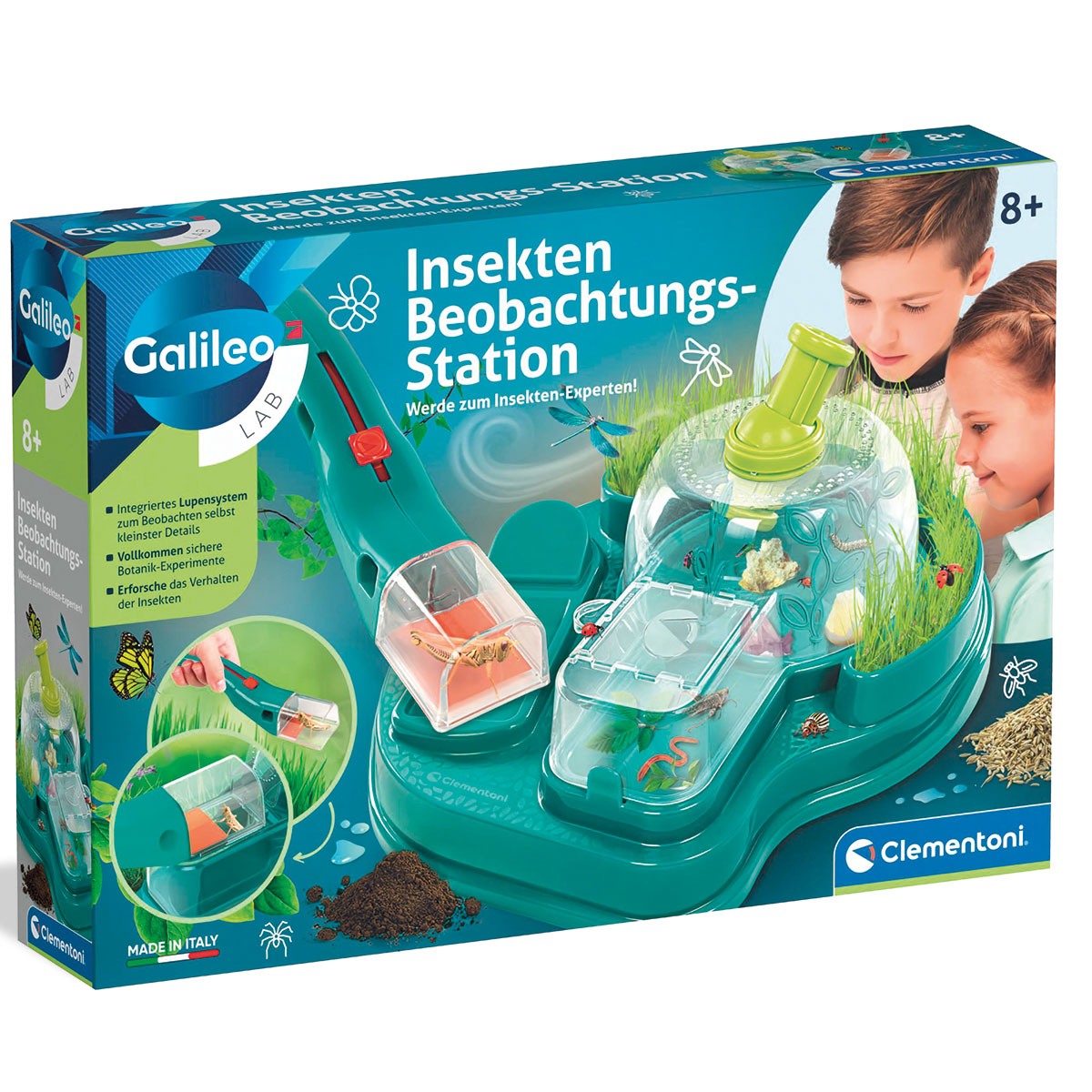 Ein Set um Insekten aus nächster Nähe zu betrachten un ihre Gewohnheiten durch eine spezielle Brille mit Vergrösserungslinse auf der transparenten Kuppel zu studieren. Die Station eignet sich für die Unterbringung vieler verschiedener Insekten und sogar Raupen, bis sie zu Schmetterlingen schlüpfen. Das Insektenobservatiorium regt die Fantasie der Kinder an und fördert ihre Beobachtungsfähigkeiten, währen sie die Geheimnisse der Insekten entdecken. Geeignter für Kinder ab 8 Jahren und älter.