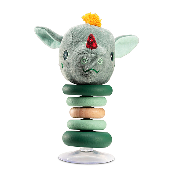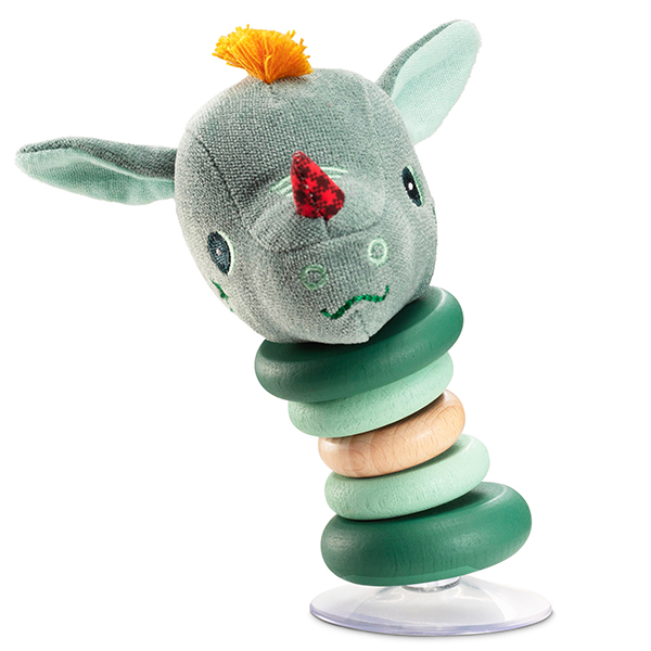 Diese Rassel schwingt beim kleinsten Stoss fröhlich hin und her. Durch den Saugnapf bleibt sie robust stehen und kann überall befestigt werden.