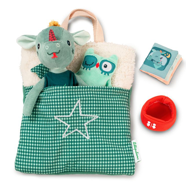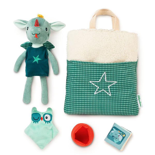 Zeit zum Schlafen! Hilfst du Joe, der Drache, sich fürs Bett fertig zu machen? Er geht auf das Töpfchen, zieht seinem Pyjama und eine Windel an, und kuschelt sich dann gemeinsam mit ihrem Kuscheltier in das weiche Bett. Noch eine Geschichte vorlesen und dann gehen die Augen zu und das Licht aus. Der phosphoreszierende Stern auf ihrem Bett sorgt für ein ruhiges Nachtlicht. Mit diesem Set überlaufen und erleben Sie die Abendroutine auf spielerische Weise. Dies bringt Ruhe und Struktur.100% Polyester. Maschinenwaschbar bei 30°C - Schonwaschgang, im Netz oder Kissenbezug, Klettverschlüsse schliessen.