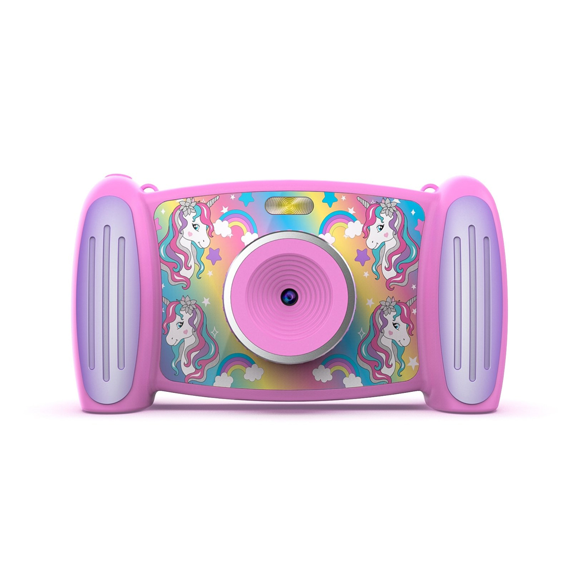 Kinderkamera im Einhorn-Design: 5 MP Fotos, 1080p Video, 4× Zoom, 5 Filter, 5 Effekte, 4 Spiele, MP3-Player, Micro-SD-kompatibel.