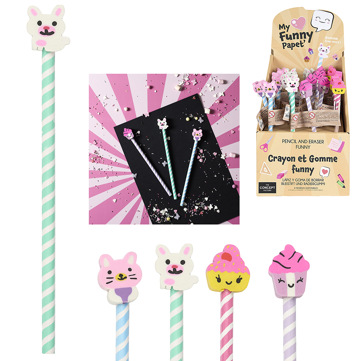Kawaii Bleitifte mit lustigen Radiergummi-Motiven.