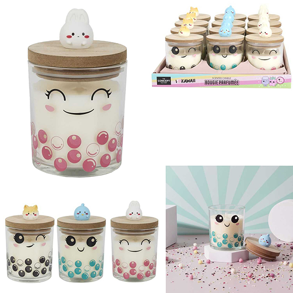 Kawaii Duftkerze im Glas mit Holzdeckel ass.