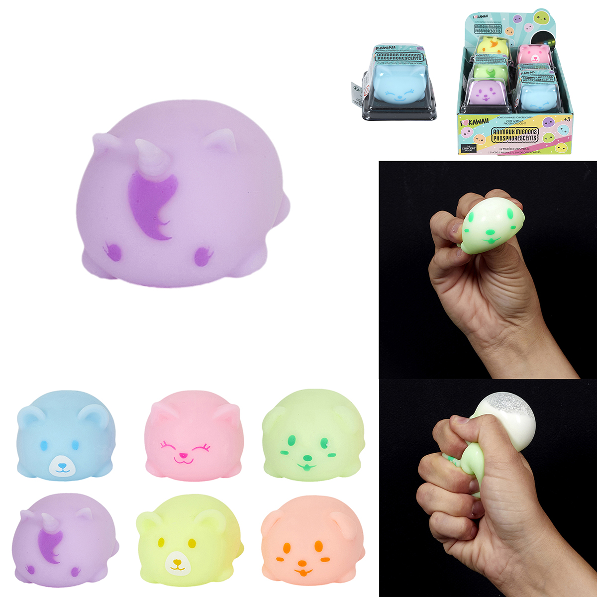 Kawaii Quetschtiere im Display 6-fach assortiert. Leuchten im Dunkeln