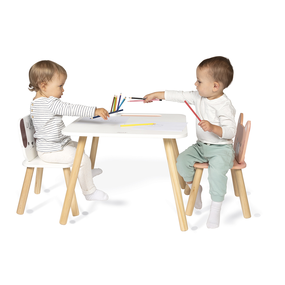Ein raffiniertes Möbelstück für große Ideen! Bieten Sie Ihrem Kind einen Raum für Kreativität mit unserem Holztisch in schlichtem Design, der eigens für Kleinkinder entwickelt wurde. Dank des integrierten Stauraums lassen sich Stifte und Zubehör leicht wegräumen. Stuhl nicht im Lieferumfang enthalten. Möbelstück aus Holz, für Kinder ab 18 Monaten.