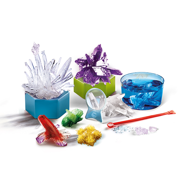 Ein umfassendes Wisschenschafts-Labor mit vielen Substanzen, um erstaunliche und farbenreiche Kristalle in unendlichen unterscheidlichen Formen zu erschaffen. Habe Spass dabei, Kristalle mit Hilfe von Gips-Formen und speziellem Löschpapier zu züchten.