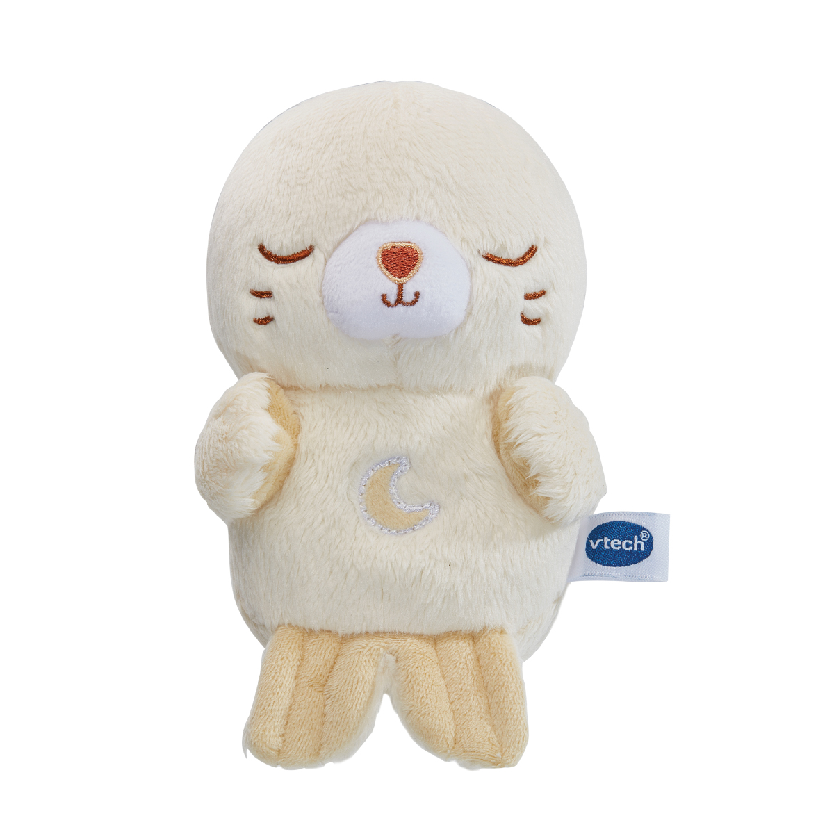 Tierisch süße Träume mit Kuschel-Robbi! Niedliches Robben-Kuscheltier aus weichem Plüsch, das beruhigende Geräusche und Melodien abspielt und passend dazu leuchtet. Die Mondtaste löst beruhigende Melodien und Naturgeräusche (z. B. Wind, Wellen, Regen, Vogelgezwitscher) aus. Lichter leuchten passend zu den Melodien und Geräuschen im Inneren des Plüschtiers auf. Perfekt zum Kuscheln und Beruhigen. Dank der kompakten Größe passt das Plüschtier perfekt in kleine Kinderhände. Die elektronische Einheit kann entnommen und das Plüschtier so in der Waschmaschine gewaschen werden.