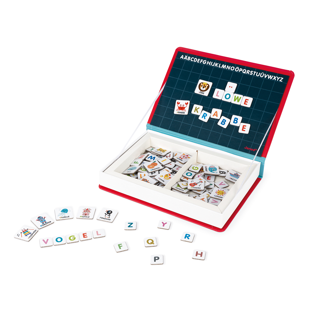 Magnetisches Variations- und Kombinationsspielzeug. Lerne das Alphabet (deutsche Version). Edukatives Spielzeug aus Karton, um das Alphabet zu lernen. Geeignet für Kinder von 3-8 Jahren. Komplett mit reichhaltigem Zubehör. Ein 112-teiliges Buchstabenset in bunten Farben und im hochwertigen Klappkarton verpackt. Es besteht aus 26 bunten Magnetbildern, die zeigen, welche Wörter gelegt werden sollen. Dadurch wird spielerisch das Alphabet geschult und die Vorstellungskraft und Kreativität Ihres Kindes gefördert. Die praktische Aufbewahrungsbox erlaubt einen leichten und bequemen Transport, so dass Ihr Kind sein Lieblingsspielzeug überall hin mitnehmen kann.
