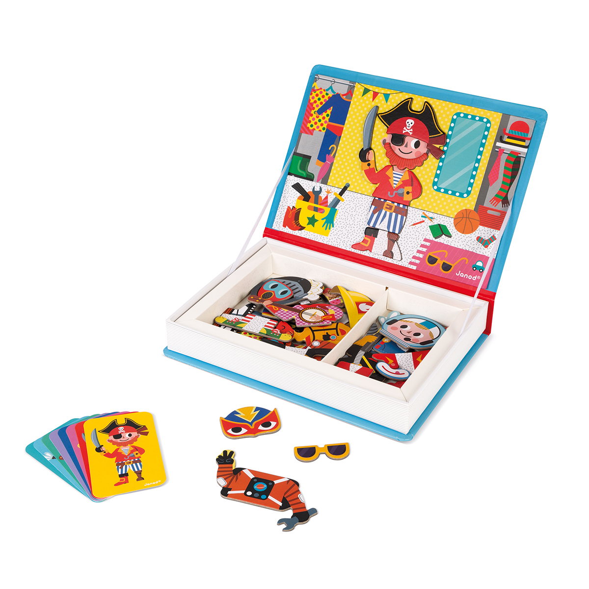 Magnetisches Variations- und Kombinationsspielzeug. Edukatives Spielzeug aus Karton, um die Kreativität zu fördern. Geeignet für Kinder (Jungen) von 3-8 Jahren. Komplett mit reichhaltigem Zubehör. Ein 36-teiliges Variationsset in jungenhaften Farben und im hochwertigen Klappkarton verpackt. Es besteht aus 36 Magneten, die Kleider, Hüte, Jacken und vieles mehr darstellen. Diese lassen sich auf dem magnetischen Deckel anordnen. Die 8 Vorlagen mit verschiedenen Outfits zeigen, wie die Kleinen ihre Kostüme gestalten können. Dadurch wird spielerisch die Vorstellungskraft und Kreativität Ihres Kindes gefördert. Die praktische Aufbewahrungsbox erlaubt einen leichten und bequemen Transport, so dass Ihr Kind sein Lieblingsspielzeug überall hin mitnehmen kann.