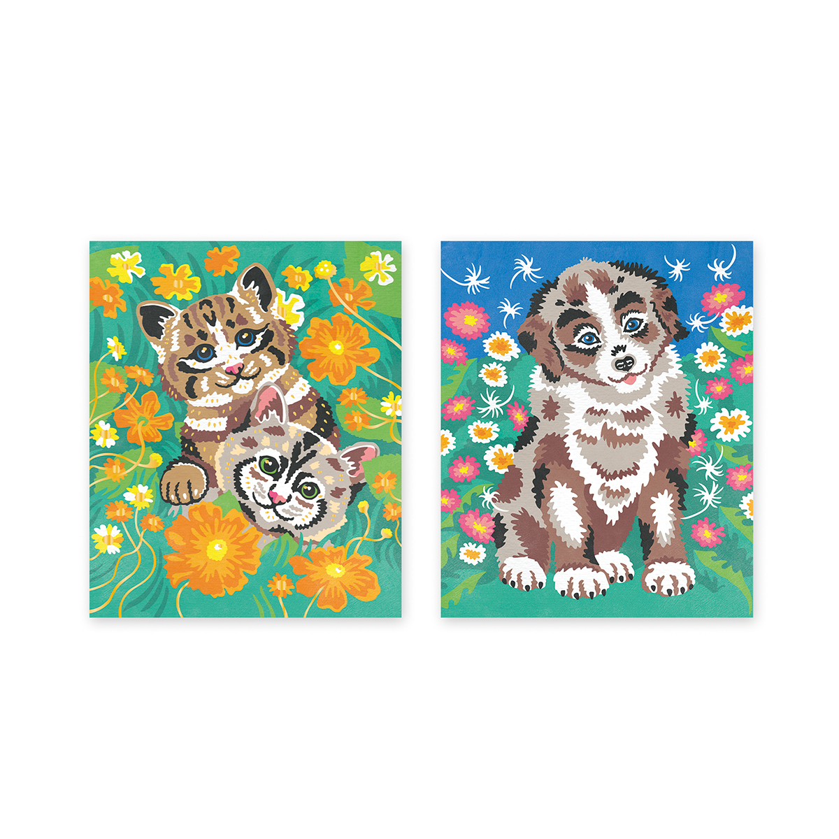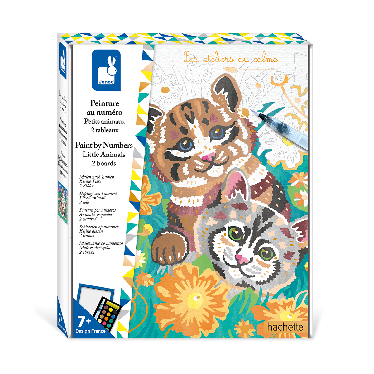 Die Lieblingsgefährten der Kinder, die sich in einer Aktivität zusammengefunden haben! Sie werden begeistert sein! Mit diesem Kreativ-Set können 2 Bilder mit der Malen-nach-Zahlen-Technik anfertigt werden. Das Ergebnis sind eine Katze und ein süsser kleiner Hund! Es enthält zudem einen Rahmen, der bemalt und individuell gestaltet werden kann, damit er zu den Bildern passt. Eine Palette mit 15 Aquarellfarben, ein Schwamm und ein Pinsel mit Wassertank vervollständigen dieses Set und ermöglichen eine originelle Aktivität. Ein Anleitungsheft zeigt, welche Farbe welcher Zahl entspricht. Eines der beiden Bilder ist mit Vergoldungseffekten versehen, um ein noch spektakuläreres Ergebnis zu erzielen. Diese Aktivität unterstützt die Entwicklung von Feinmotorik und Geduld und dauert etwa 6 Stunden. Ideal für Kinder ab 7 Jahren.