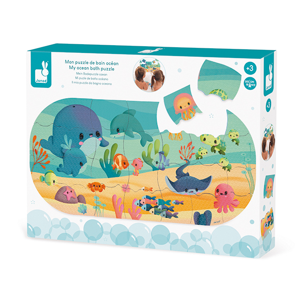 Taucht 20.000 Meilen unter dem Meer in der Welt der Meerestiere! Dieses hübsch illustrierte Badepuzzle besteht aus 28 schwimmenden Teilen und einem Aufbewahrungsnetz. Mit dem Puzzle hat Ihr Kind Spass in der Badewanne und lernt zugleich den Meeresgrund und seine Bewohner kennen. Die nassen Puzzleteile haften auf den Wandfliesen. Praktisch, um das Puzzle beliebig oft zusammenzusetzen! Badespielzeug für Kinder ab 3 Jahren.