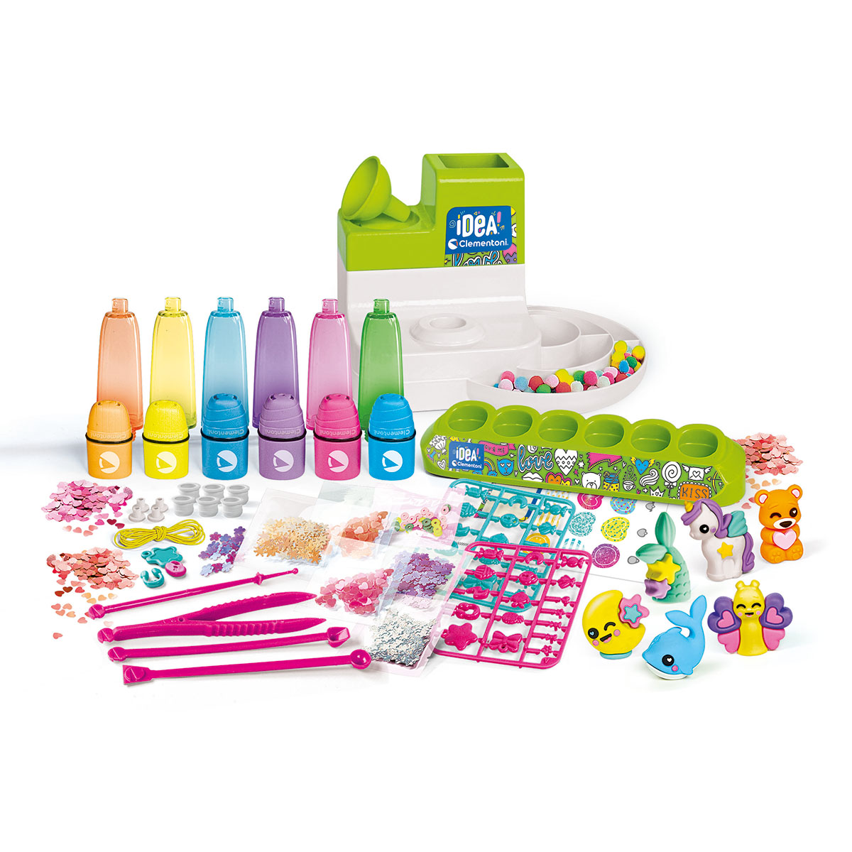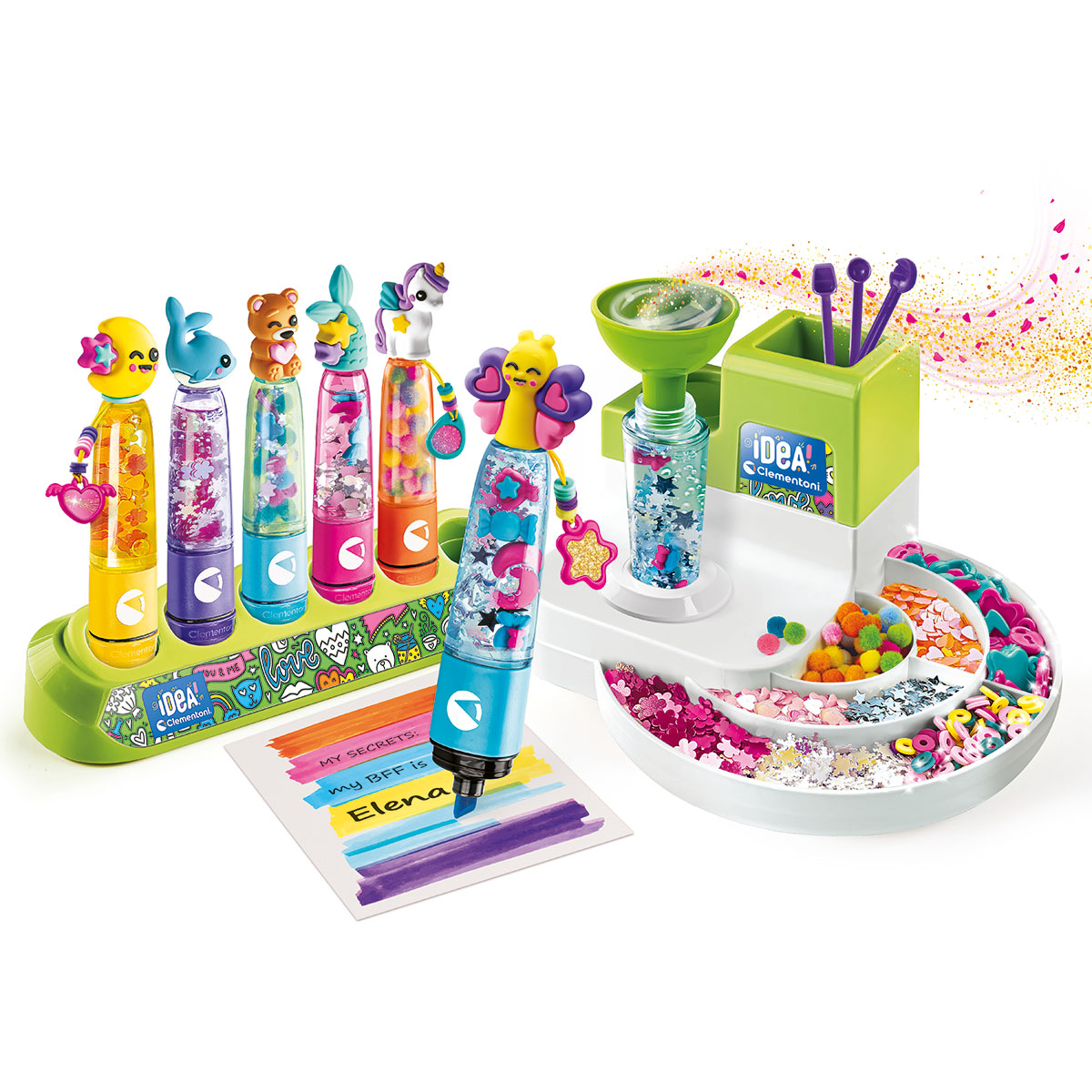 Eine originelle Kreativ-Werkstatt, für endlosen Spass beim Herstellen vieler bunter Stifte! Eine neue Spielidee, die es den Kindern ermöglicht, ihre Stifte mit vielen Accessoires und Dekorationen zu gestalten und zu personalisieren. Ein praktischer Aktivitätstisch und eine Vielzahl an Instrumenten unterstützen die spielerischen Aktivitäten und sorgen für verblüffende Ergebnisse!