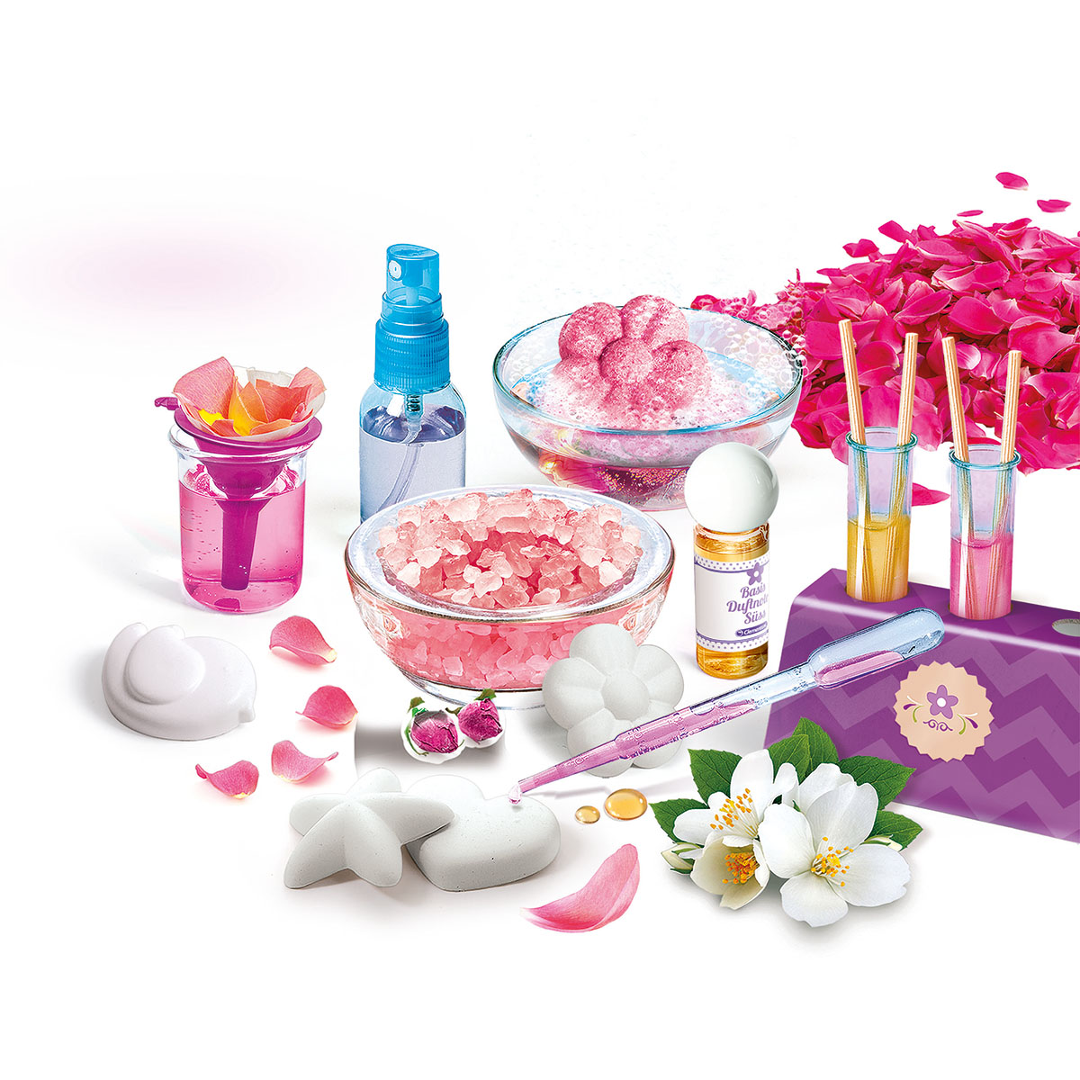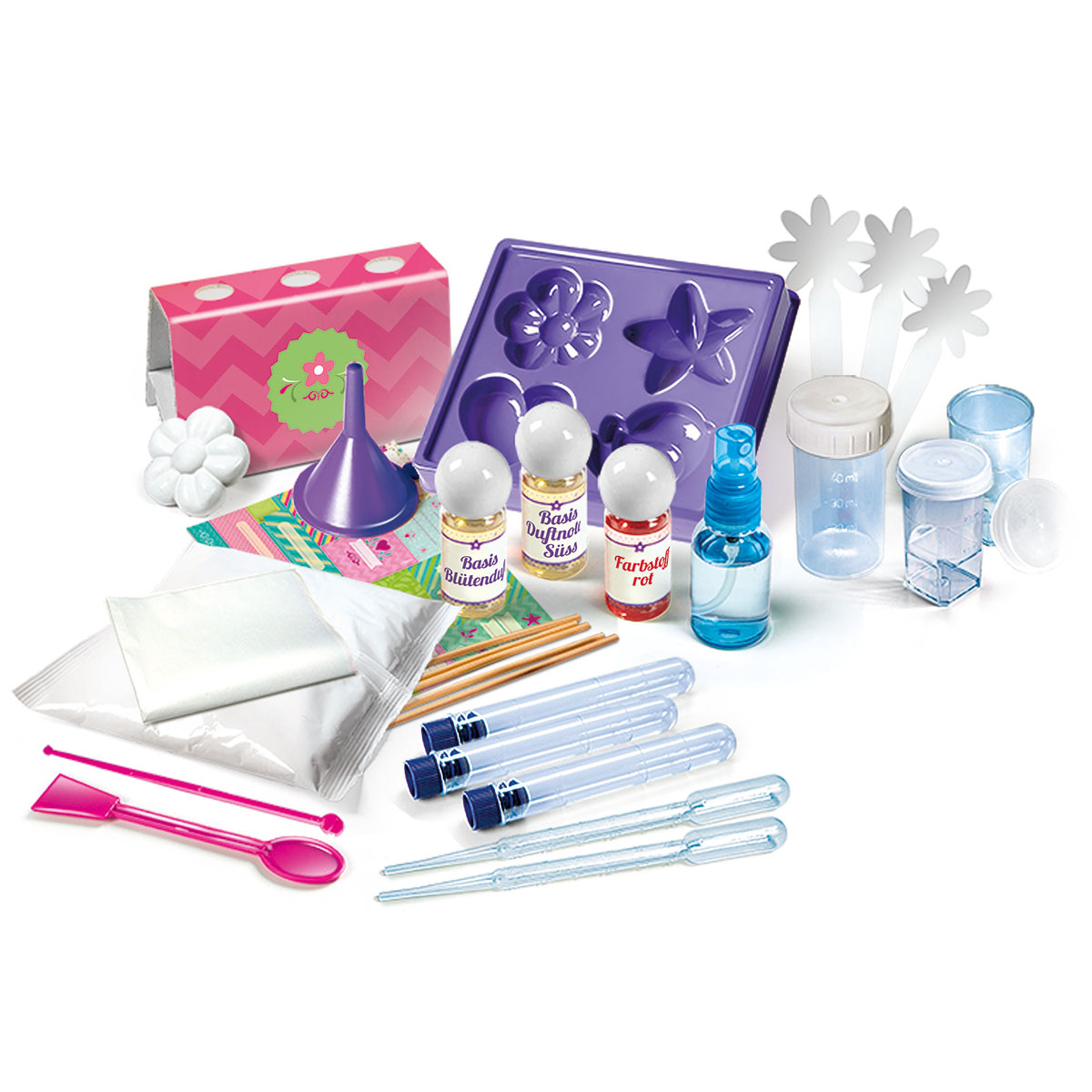Ein echtes Forschungslabor, mit dem sich wunderbare Parfümkreationen herstellen lassen! Das Set enthält Essenzen und Zutaten, die die Kreativität bei Jungs und Mädchen stimulieren. Im ausführlichen Handbuch sind sehr viele Verfahren beschrieben, die bei der Entdeckung der Welt der Parfüme hilfreich sind.