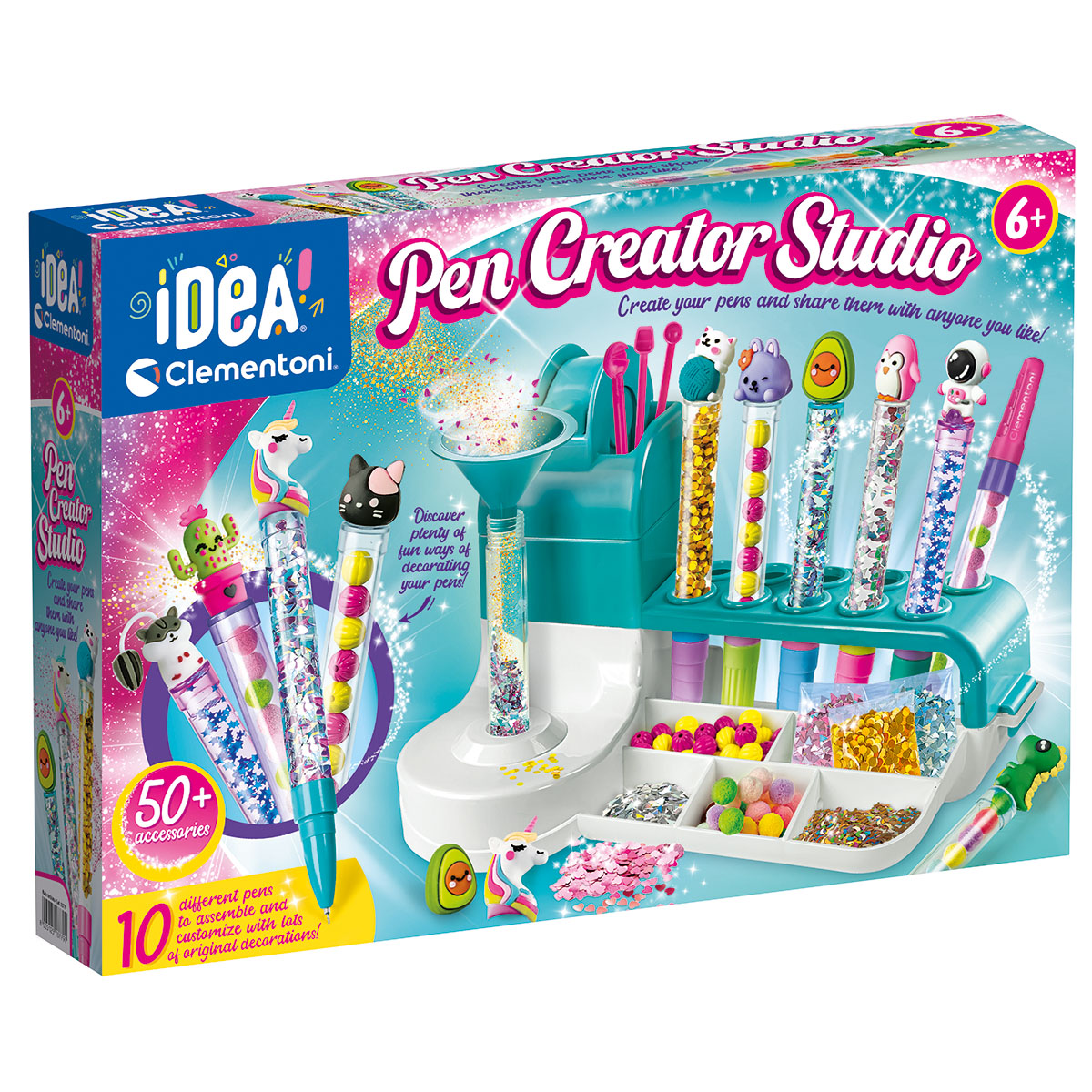 Mein Stift-Atelier. Eine originelle Kreativ-Werkstatt, für endlosen Spass beim Herstellen vieler bunter Stifte! Eine neue Spielidee, die es den Kindern ermöglicht, ihre Stifte mit vielen Accessoires und Dekorationen zu gestalten und zu personalisieren. Ein praktischer Aktivitätstisch und eine Vielzahl an Instrumenten unterstützen die spielerischen Aktivitäten und sorgen für verblüffende Ergebnisse!