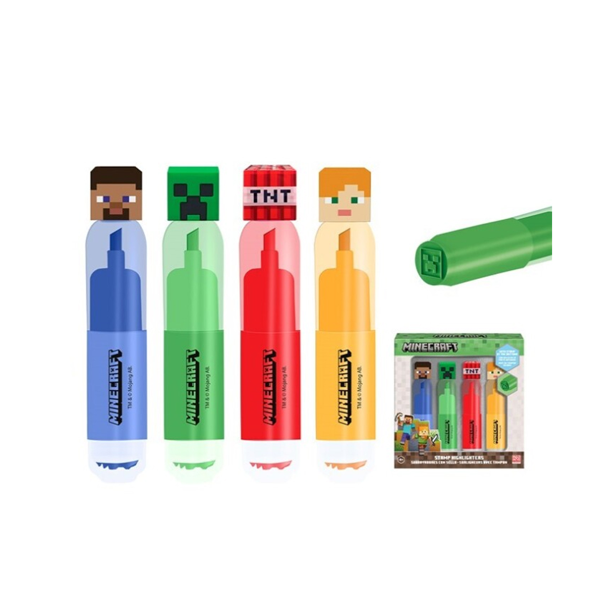 Minecraft Leuchtstifte-Set 4 Stück inklusive Stempel.