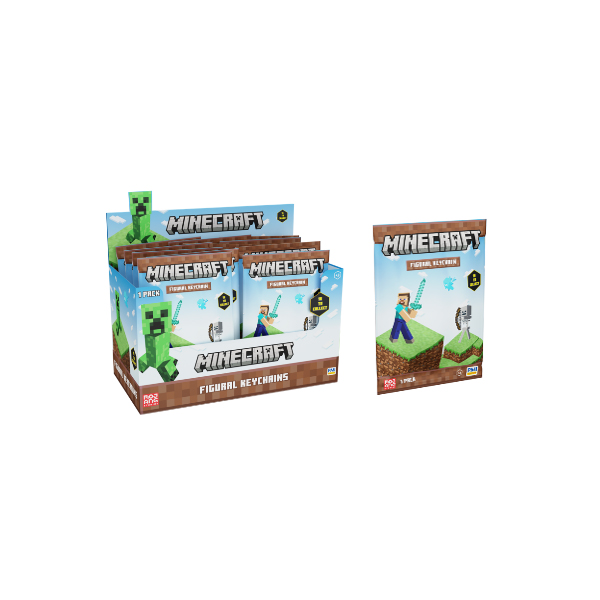 Minecraft-Schlüsselanhänger in Figurenform, 1 Stück im Folienbeutel in CDU – 16 verschiedene Designs zum Sammeln. Jeder Folienbeutel enthält einen Schlüsselanhänger und ein 4-farbiges Faltblatt.