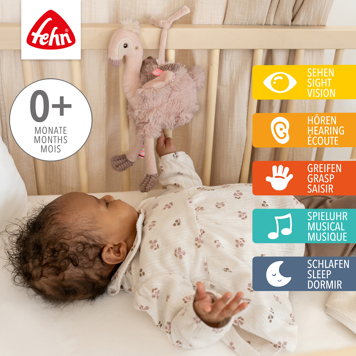 Der kuschelige Flamingo aus der Lazy, Crazy & Pink Kollektion ist nicht nur ein treuer Begleiter, sondern tröstet und beruhigt mit seiner sanften Einschlafmelodie "Schlaf Kindlein schlaf"! Durch die praktische Größe und die Befestigungsbändchen kann man den Plüsch-Flamingo überall hin mitnehmen. Fühlen, Knuddeln und Liebhaben: Ganz schnell wird er zu Babys bestem Freund!