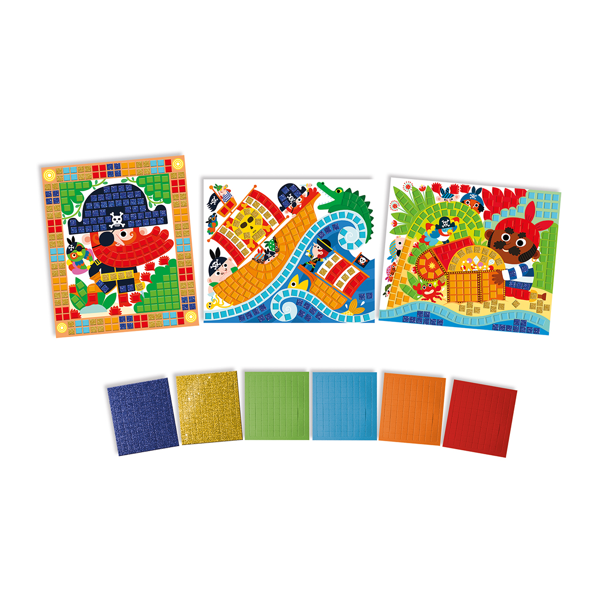 3 Karten zum Dekorieren mit über 660 Mosaiken aus Schaumstoff und 1 Anleitungsbroschüre und Modellen