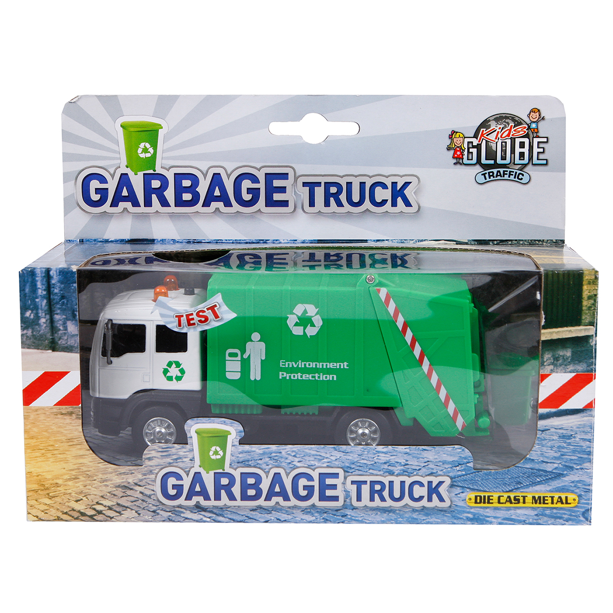 Die Cast Müll-LKW mit Rückzugfunktion, Licht und Sound 15cm.