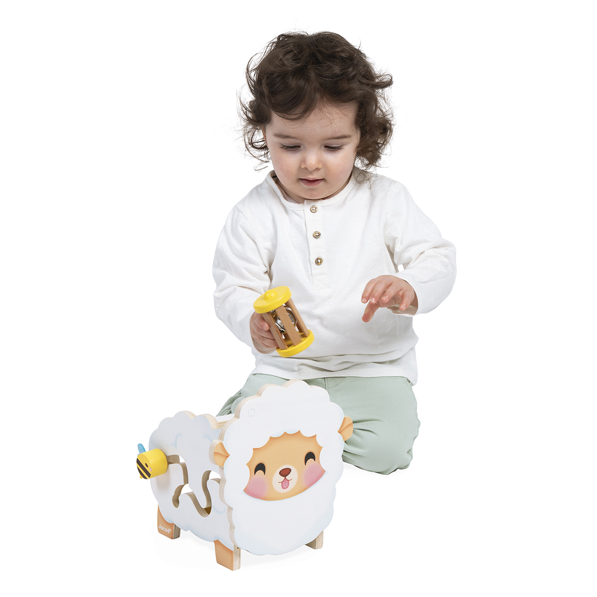 Hier ist das niedlichste aller Janod-Schafe! Es wird mit 6 Zubehörteilen geliefert, die auf und in dem Schaf verstaut werden können. Der kleine Vogel ist magnetisch und nistet auf dem Kopf. Auf dem Rücken des Schafs können die Rassel und der anschraubbare Schmetterling befestigt werden. Die Blumen werden in die Seiten gesteckt. Das Baby wird darin einen Spiegel, ein Kratz-Element und ein durchsichtiges Plexiglas-Element entdecken, durch das es die Welt in Orange betrachten kann. Fördert Feinmotorik und die Vorstellungskraft von Kindern. Spielzeug aus Holz. Motorikspielzeug für Kinder ab 12 Monaten.