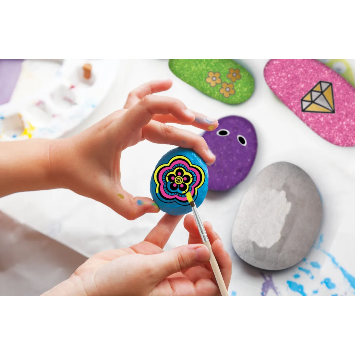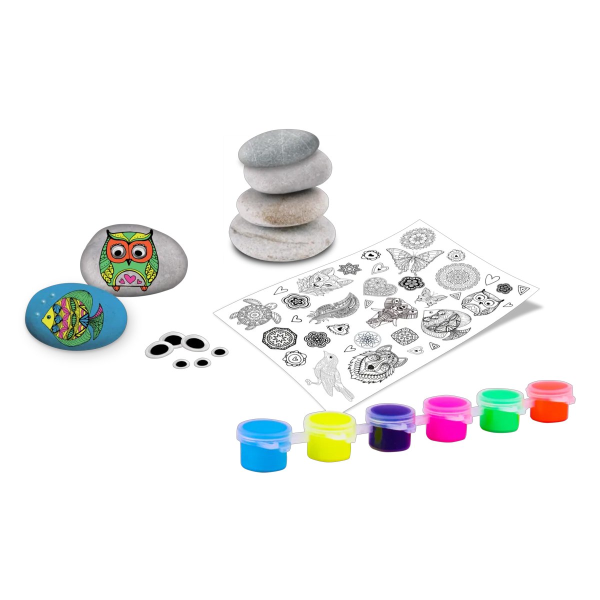 Neon Steine anmalen mit 4 Steinen und 6 Farben. Alter 5+.