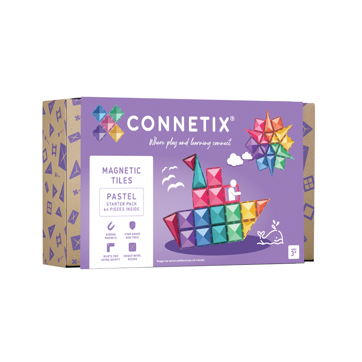 Mit dem CONNETIX 64-teiligen Pastell-Starterset fördern Sie Kreativität und begeistern Kinder spielerisch für MINT-Themen. Das Set enthält magnetische Bausteine ??in geometrischen Formen und acht einzigartigen, erdigen Pastellfarben. Kinder können damit 2D- und 3D-Modelle wie Häuser, Burgen, Parkplätze, Raketen, Türme, Puzzles, Sortierboxen und Münzen bauen, die Grundlagen des Magnetismus erforschen, Formen, Muster und Farben entdecken, ihre Feinmotorik und ihr Problemlösungsvermögen entwickeln und vieles mehr. Connetix ist ein hochwertiges, vielseitiges Spielzeug, das mit den Kindern mitwächst und ihre Spiel- und Lernprozesse komplexer gestaltet.