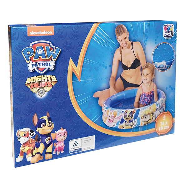 Babypool mit Motiv aus Paw Patrol für Kinder. Leicht zu füllen und mit fantastischen Motiven von Paw Patrol wird dieser Pool ein grosser Hit für alle Paw Patrol Fans. Mit aufblasbarem Boden.