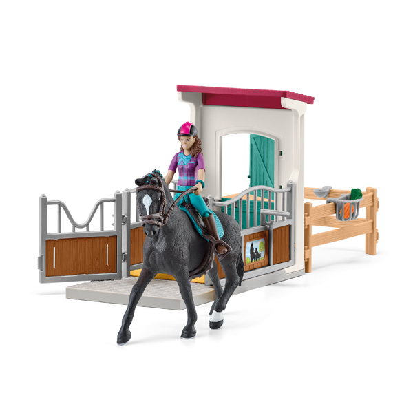 Pferdebox mit Horse Club mit Lisa & Storm. Lisa besucht ihre Friesen-Stute in der Pferdebox, um ihre Mähne zu striegeln und kunstvoll süsse Accessoires einzuflechten. Sie legt viel Wert darauf, dass Storm immer gepflegt und hübsch aussieht, so wie sie selbst auch. In der Pferdebox bewahrt Lisa ausserdem die Auszeichnungen auf, die sie zusammen mit Storm schon ergattert hat. Figur Lisa ist vollbeweglich. Haare, Oberkörper und Beine können beliebig ausgetauscht werden.