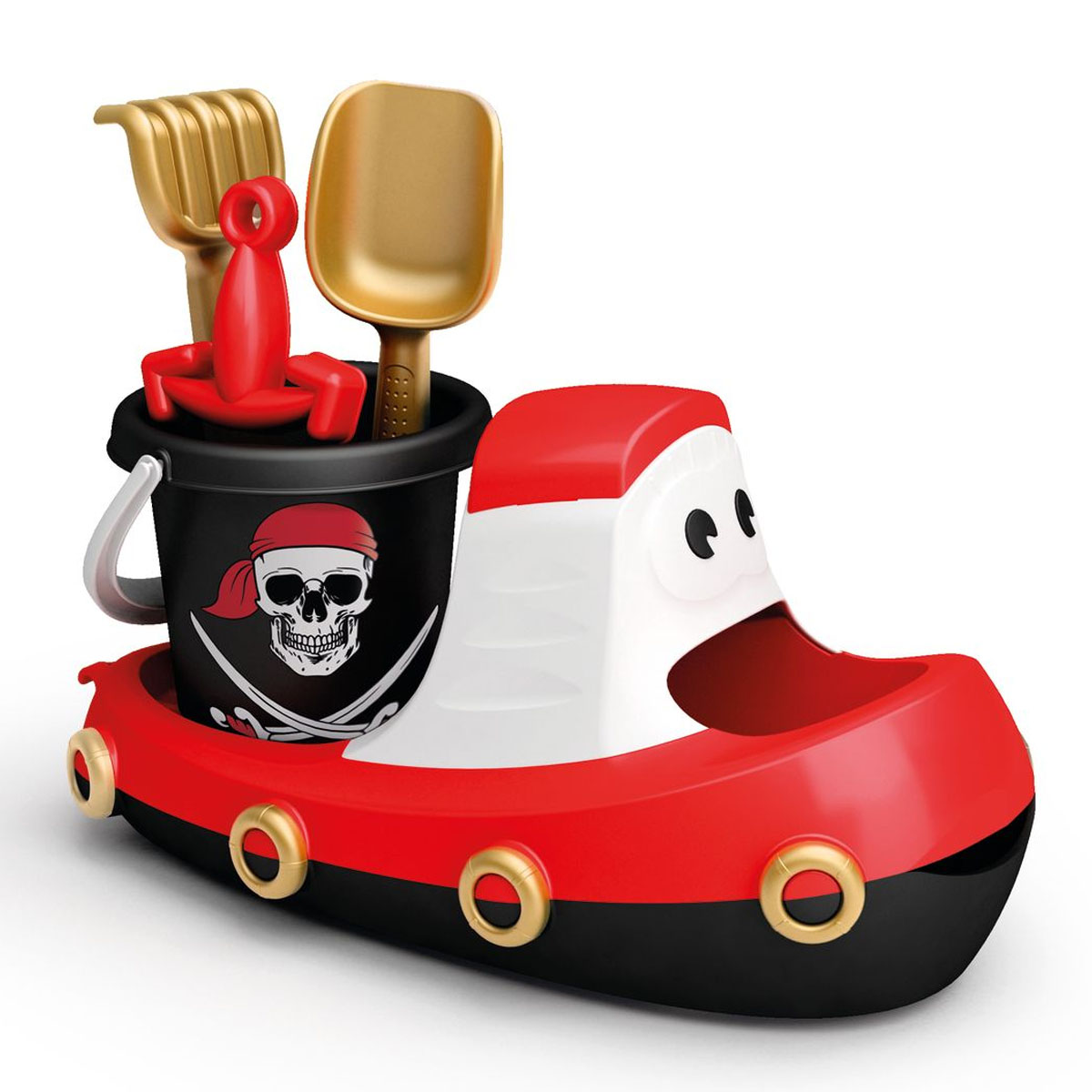 Sandeimer-Set Pirat 13cm mit Boot. Dieser lustige Sandeimer ist perfekt zum Formen, Giessen, Schaufeln und Rechen.