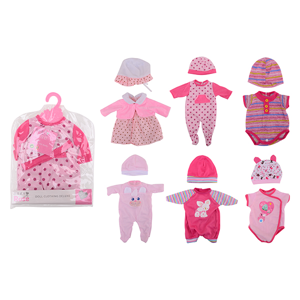 Puppenkleider assortiert auf Kleiderbügel, 40-45cm.