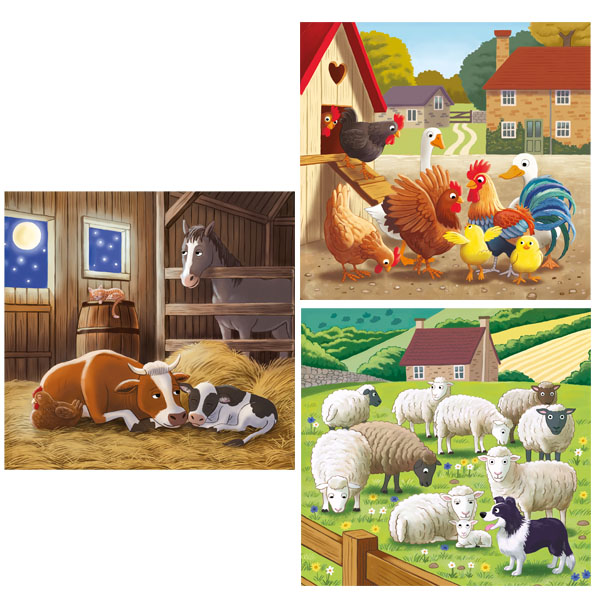 Drei wunderschöne Puzzle mit Motiven aus der Farmwelt bestehend aus je 48 Teilen.