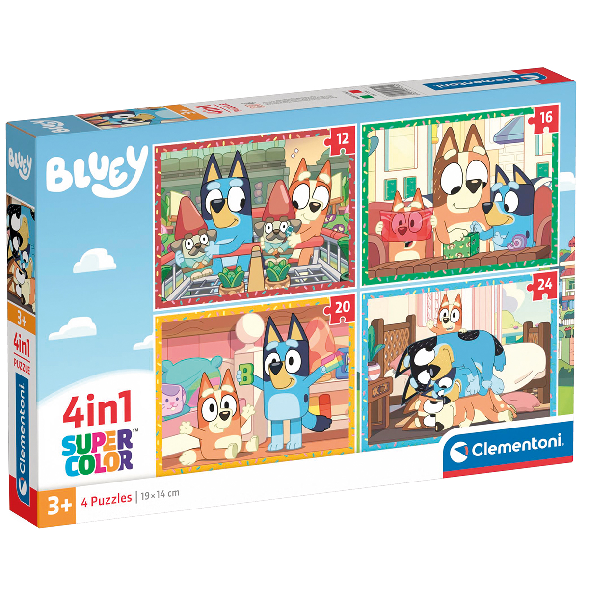 Vier wunderschöne Puzzle mit Motiven aus der Welt von Bluey.