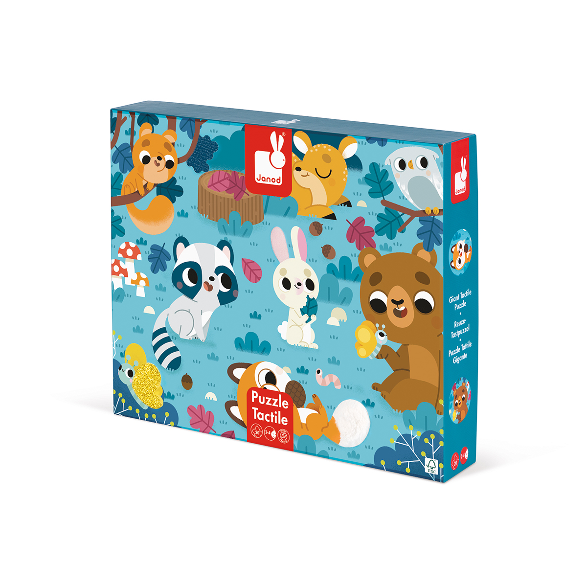 Hübsches Puzzle zum Thema die Tiere im Wald mit 20 Teilen. 7 Teile sind zum fühlen auf dem Puzzle und 4 Teile auf der Verpackung.