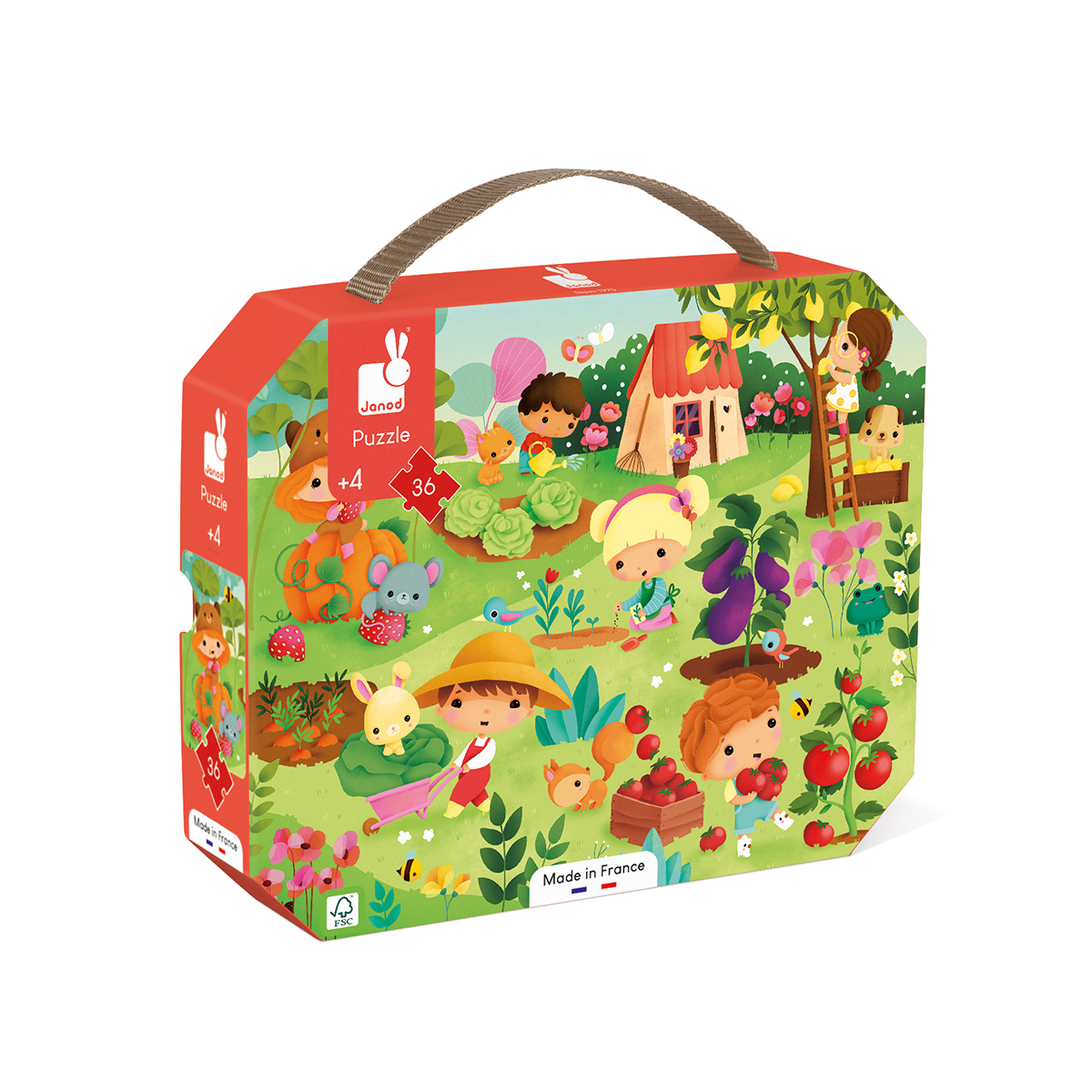 Entdecke den Garten und bewundere die Natur! Ein schönes 36-teiliges Puzzle aus Karton, mit dem Ihr Kind sein Erinnerungsvermögen und seine Feinmotorik entwickelt. Einfach zu transportieren in einem hübschen Köfferchen mit Stoffgriff. Mit Postervorlage, das Puzzle-Neulingen als Vorlage dient. Geübte können das Puzzle danach ohne Hilfe meistern. Hergestellt in Frankreich.