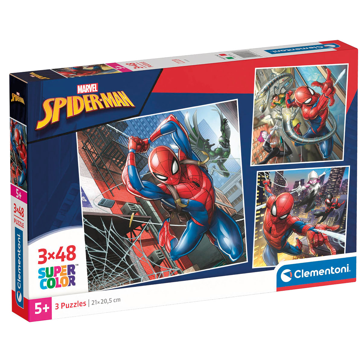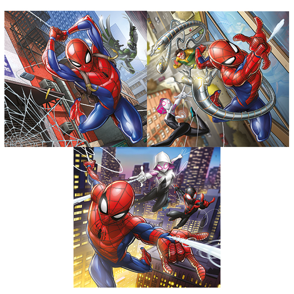 Drei wunderschöne Puzzle mit Motiven aus der Welt von Spiderman bestehend aus je 48 Teilen.