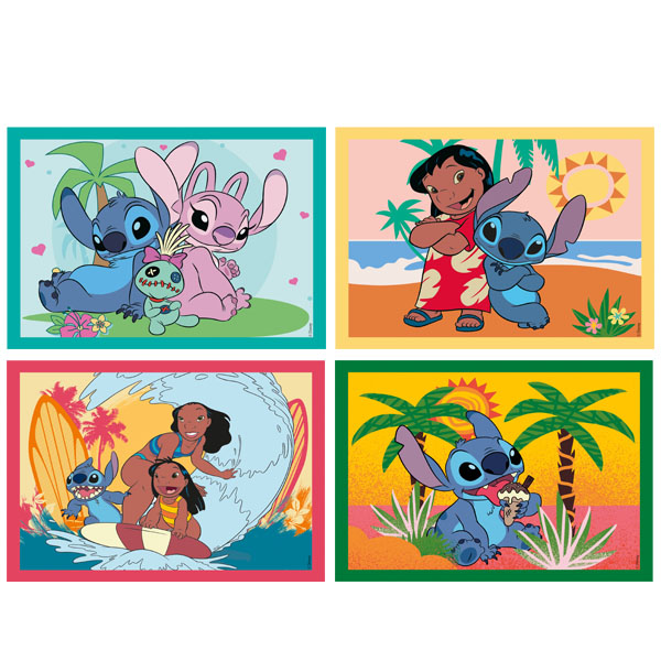 Vier wunderschöne Puzzle mit Motiven aus der Welt von Stitch.
