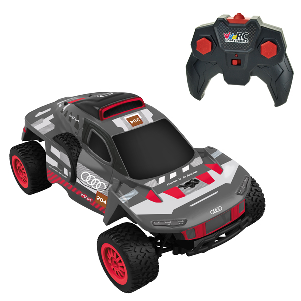 RC Audi RSQ e-tron 1:16, 2.4GHz, 31cm, volle Lenk- und Fahrfunktion, vorne und hinten gefedert, 20 m Distanz, exkl. Batterien.
