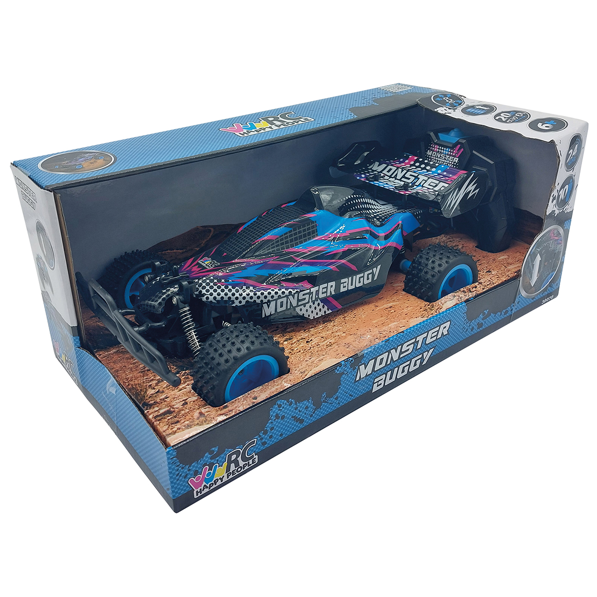 RC Monster Buggy 30cm, 2.4GHz, Geschwindigkeit bis zu 8km/h, volle Lenk- und Fahrfunktion, Federung. Batterien inklusive. Fahrzeug: 4x 1.5V AA, Fernbedienung: 1x 9V. Alter 6+.