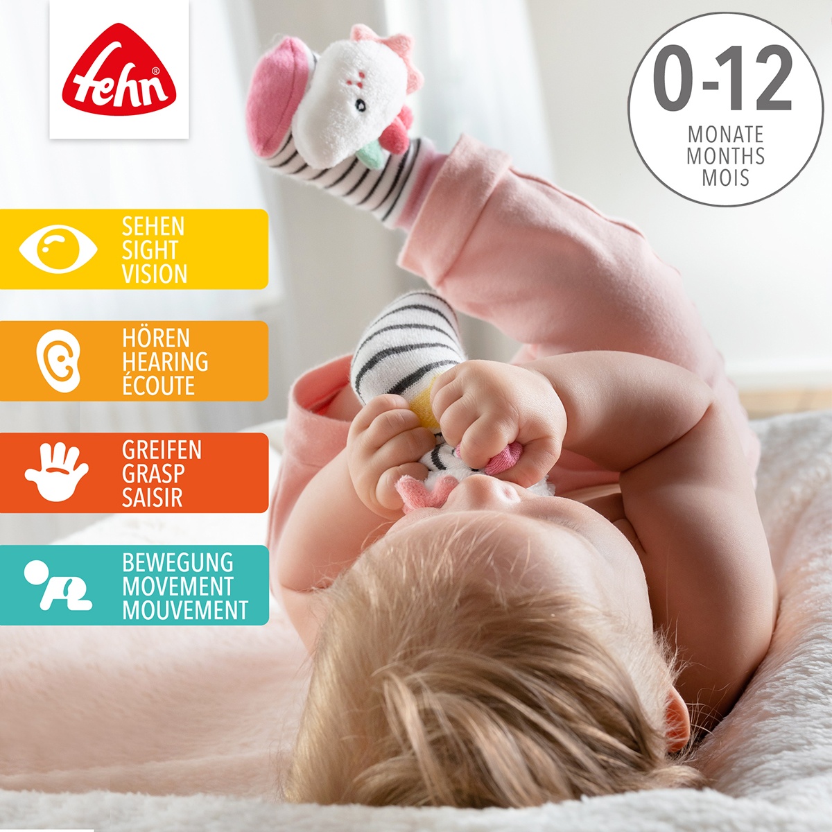 Lustiges Lernspielzeug für zuhause und unterwegs, Die Babystrümpfchen sorgen für angenehme Wärme den ganzen Tag. Die kleinen Einhorn-Köpfe erobern mit interessanten Farben und Materialien das Herz des Babys im Nu.