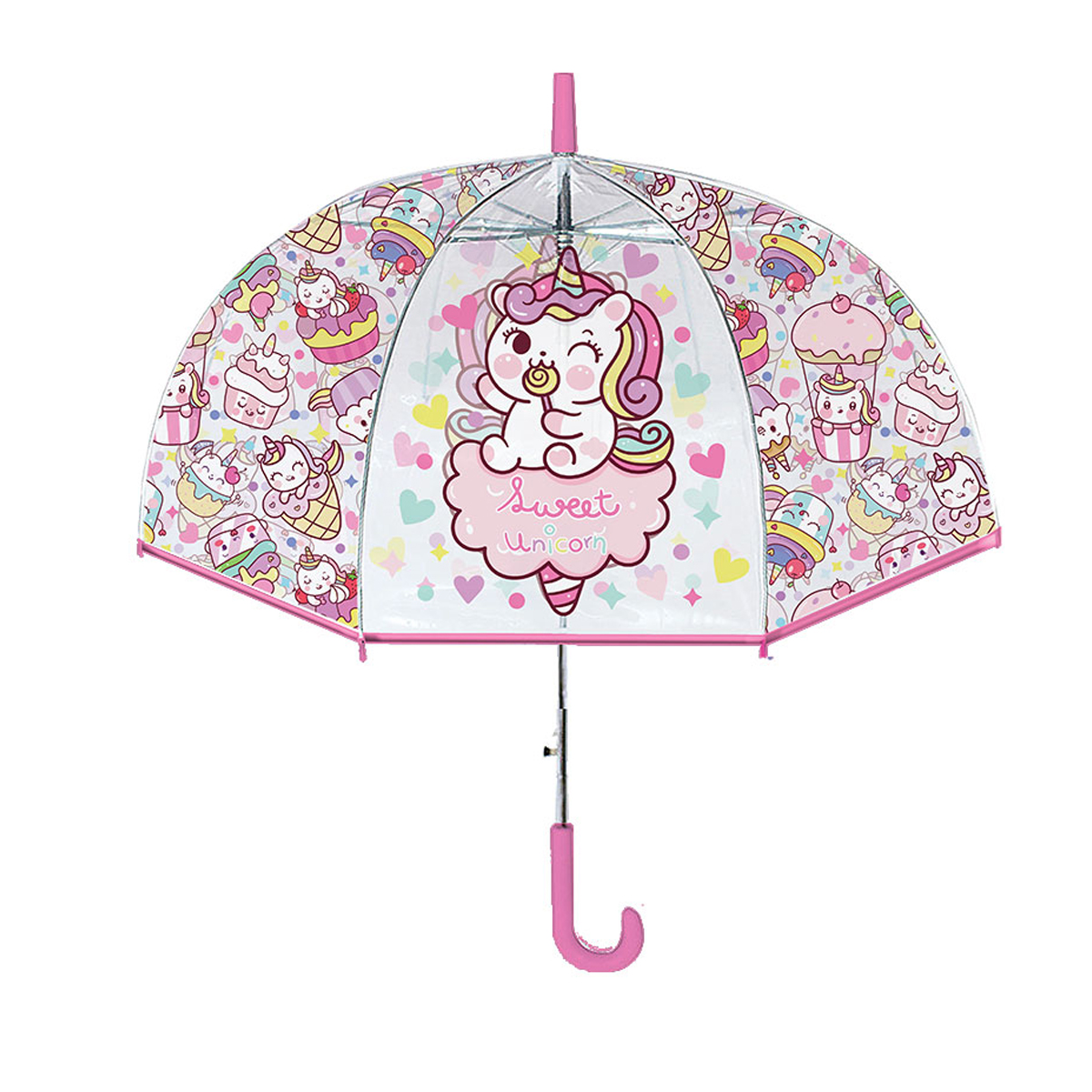 Regenschirm Einhorn 42cm aus PVC-Material, manuell zu öffnender Regenschirm für Kinder.