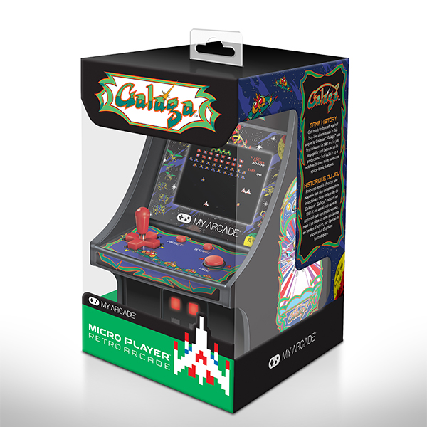 Offiziell lizenzierter Bandai Namco™-Titel. Vollfarbiger 2,75"-Bildschirm. Mit Grafiken, die vom Original-GALAGA™-Arcade-Schrank inspiriert sind. Abnehmbarer Joystick. Eingebauter Lautsprecher mit Lautstärkeregler. 3,5 mm Kopfhöreranschluss zum Anschliessen von Kopfhörern. Stromversorgung entweder über 4 AA-Batterien (nicht im Lieferumfang enthalten) oder über ein Micro-USB-Kabel (nicht im Lieferumfang enthalten). Perfekt für jedes Spielzimmer, Büro oder jede Vitrine!