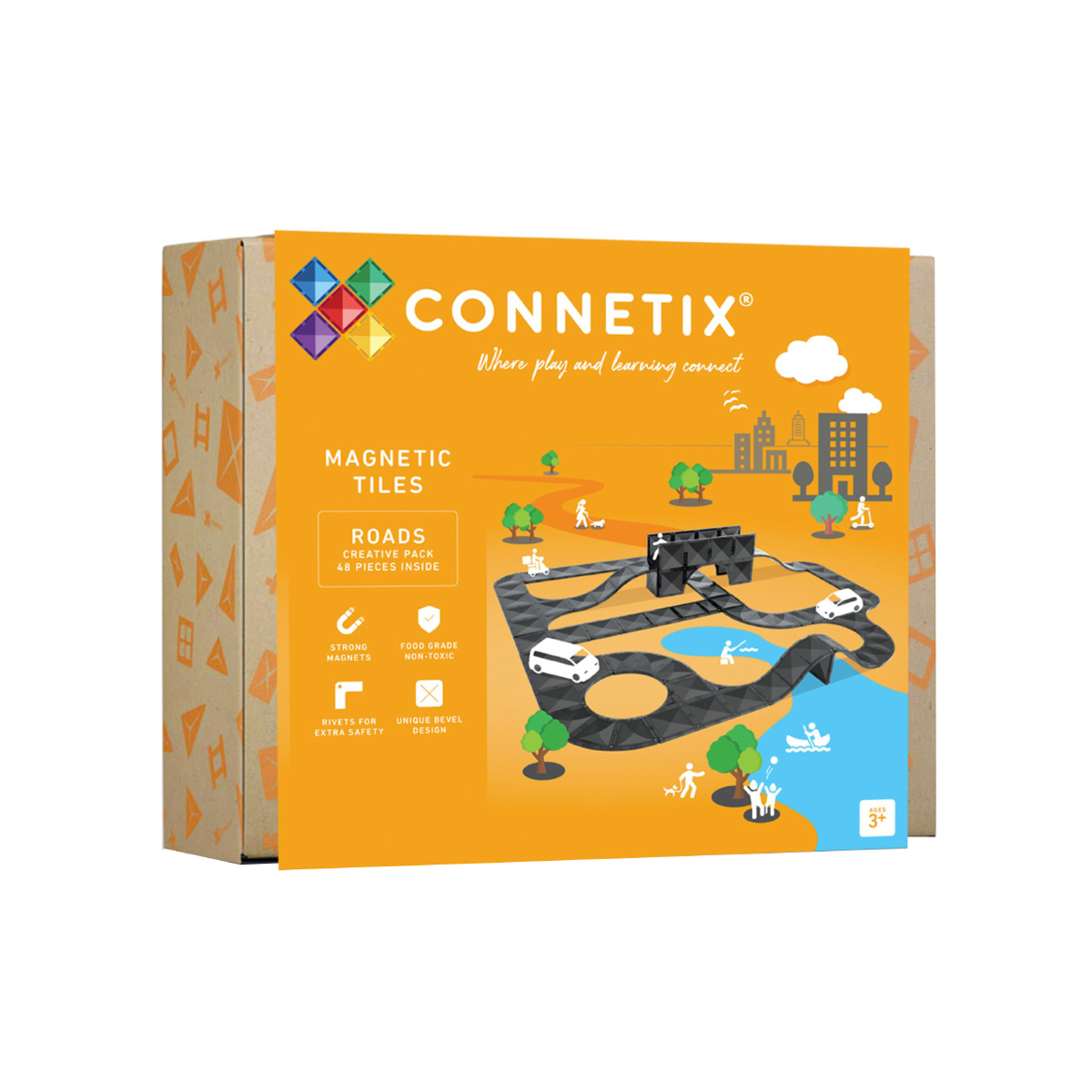 Mit dem CONNETIX 48-teiligen Straßen-Kreativset werden Spiel und Architektur zum Erlebnis. Das Set enthält eine aufregende Auswahl an durchdacht gestalteten Magnetbausteinen in elegantem Schwarz, darunter Viertelkreise, Bögen, Kreuzungen und Rampen. Damit lassen sich Straßen, Rennstrecken, Skateparks, Städte und vieles mehr bauen! Die schwarzen Bausteine ??verstärken die Optik von Straßen, Rampen und Startbahnen, während der Verzicht auf weiße Linien und Fahrbahnmarkierungen die für CONNETIX-Produkte typische, grenzenlose Gestaltungsfreiheit bewahrt. So können Kinder die Bausteine ??ganz nach ihren eigenen Vorstellungen kombinieren und eigene, kreative Bauwerke erschaffen.