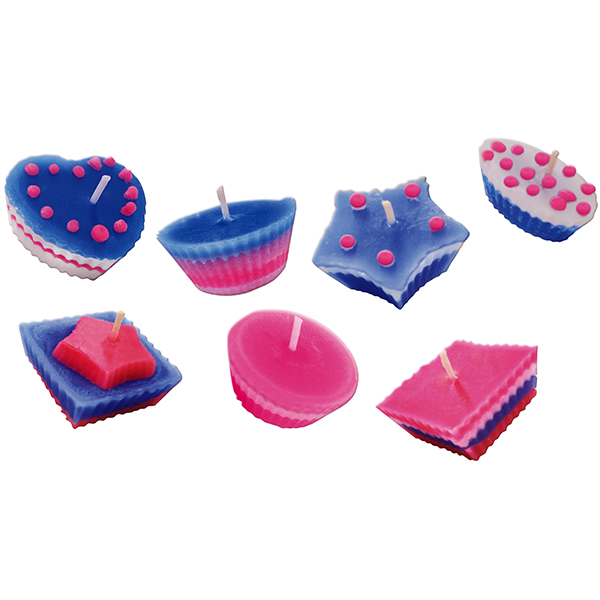 Bastelset Duftkerzen giessen von SES. Stelle den Kerzenwachs in die Mikrowelle, damit der Wachs flüssig wird. Anschliessend fülle den flüssigen Wachs in die Silikonförmchen. Stecke den Docht in den Wachs und warte bis der Wachs hart ist. So erstellst Du einzigartige Kerzen nach deinen Ideen und mit einem besonderen Duft. Inhalt: 5 verschiedene Silikonförmchen, 3 Blöcke mit Wachs (weiss, blau und rot), Kerzendocht, Messbecher, Karten um den Docht in der Mitte der Kerze zu fixieren, Anleitung. Für Kinder ab 7 Jahren.