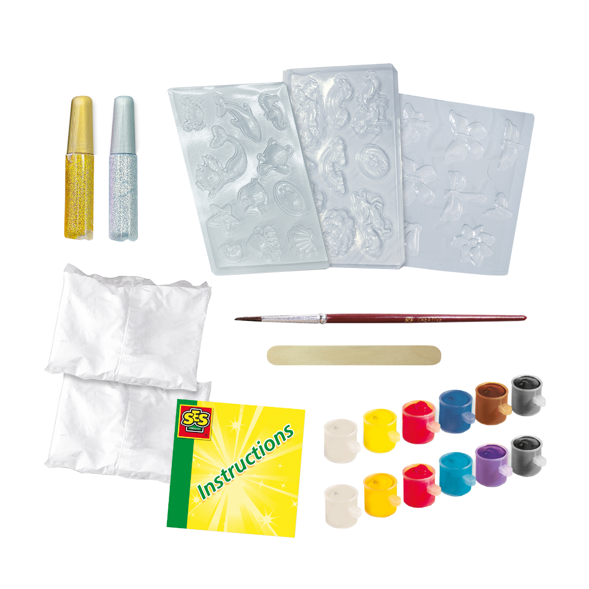 Mit diesem Set lassen sich ganz eifach schöne Einhörner und Meeerjungfrauen erstellen. Giesse den Gips in die Giessform und lasse ihn aushärten. Nimm die mitgelieferte Farbe und bemale die Figuren nach deinem Geschmack.