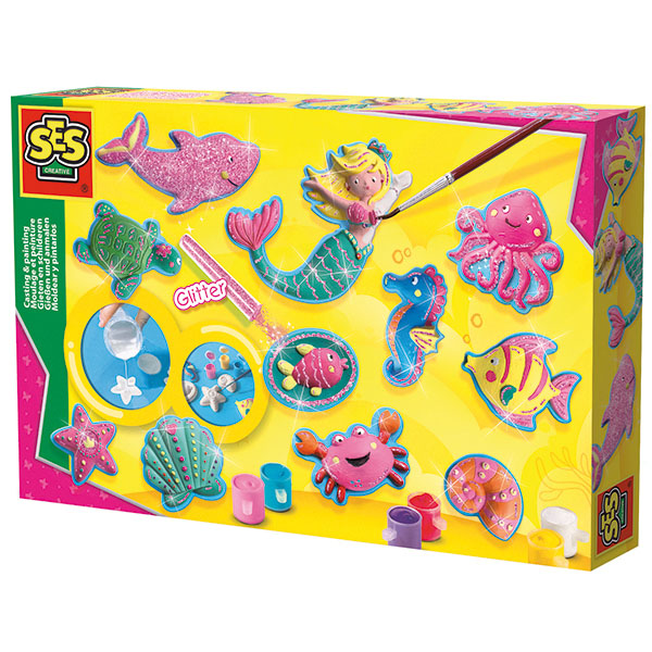 Mit diesem Set von SES kannst du ganz einfach schöne Unterwasserfiguren erstellen. Giesse den Gips in die Giessform und lasse ihn aushärten. Nimm die mitgelieferte Farbe und male die Figuren an, wie es dir gefällt. Das macht riesigen Spass mit tollen Ergebnissen!