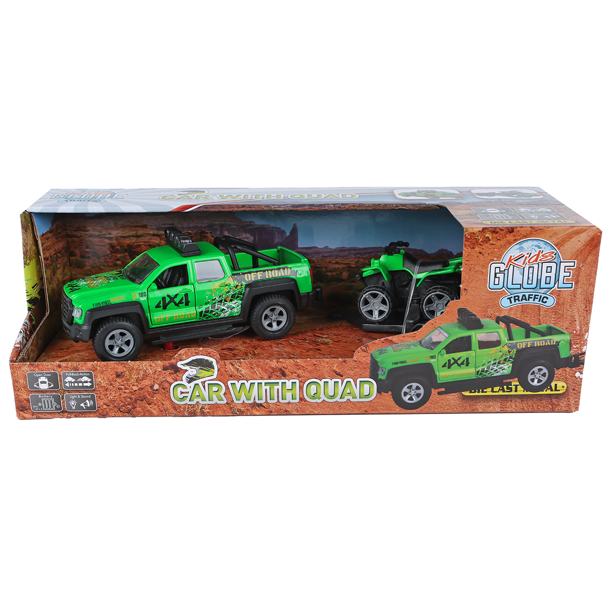 Mit diesem tollen SUV 29cm mit Anhänger und Quad, mit Sound und Licht, erlebst du viele Abenteuer.