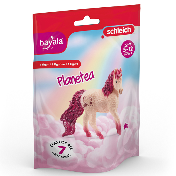 Sammeleinhorn Planetea. Farbige Sammeleinhörner für viel Sammelspass und noch mehr phantasievolle Geschichten. Einhorn in leuchtenden Farben, mit Glitzerdetails und Tattoo.