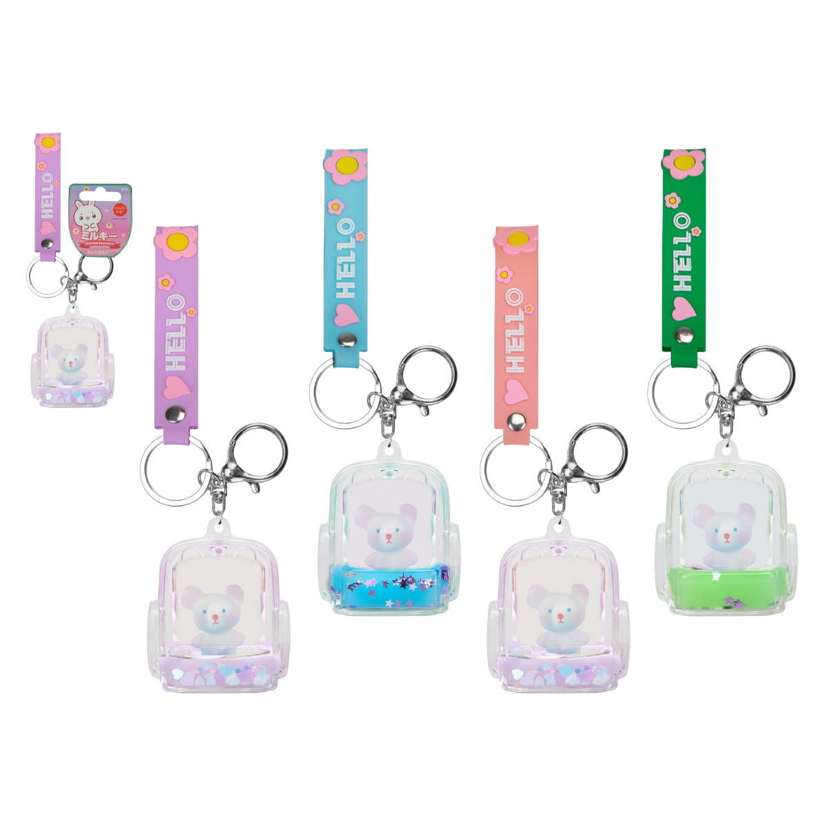 Schlüsselanhänger mit Acryl-Charm, Flüssigkeit und Band, 4-fach assortiert