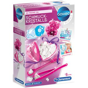 Mit diesem einzigartigen Forschungsset können Kinder fantastische, wunderschöne und farbige Juwelen und Kristalle kreieren. Die werden dann in edle Edelstein- und Diamantfassungen eingeschlossen.