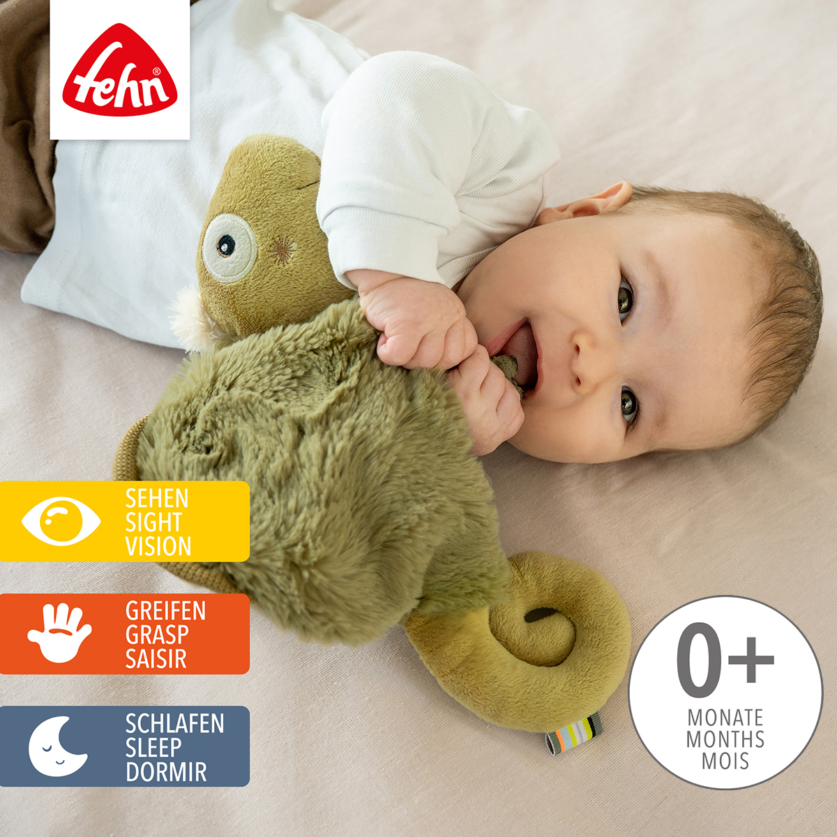 Das zauberhafte Schmusetuch Chamäleon aus der Lazy, Crazy & Pink Kollektion ist Tröster, Einschlafhelfer und Kuschelfreund in einem. Als Kuscheltier wird das Chamäleon zum treuen Begleiter ob Zuhause oder auf Reisen. Beim Einschlafen ist seine anschmiegsame Körperform eine echte Hilfe – tagsüber laden die kuschelweichen Materialien in Form eines Chamäleons zum Greifen, Fühlen und Knuddeln ein und am Abend spendet es Geborgenheit, sodass das niedliche Chamäleon bald auf jedem Abenteuer dabei sein wird.